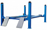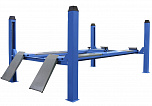 Подъемник четырехстоечный, электромеханический, платформенный. Предназначен для установки тест системы "сход-развал". Хорошо подходит для длинобазных автомобилей. По отдельному заказу подъёмники могут быть укомплектованы тележкой с домкратом для вывешивания передней или задней оси автомобиля. Подъемник комплектуется микропроцессорной системой синхронизации подъёма-опускания платформ.