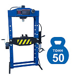 Усилие 50 тонн. Полностью сварная рама. Управление ручное/ножное. Гидроцилиндр с пуансоном перемещается по ширине каретки, клапан защиты от перегрузки, манометр, ручная лебедка. Ход поршня 220 мм. Рабочее окно 730х1290 мм. Рекомендуется для выпрессовки подшипников, деталей машин, втулок и т.п. в автосервисе, гараже и СТО. Доставка РФ, РБ, Армения, Казахстан, Киргизия.