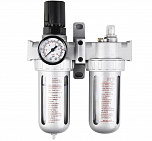 Регулятор давления воздуха с лубрикатором, влагоотделителем и манометром 1/4”. Пропускная способность – 700 л/мин. Давление компрессора 0-12 Бар. Снижает давление между компрессором и пневмоинструментом.