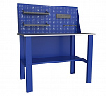Бестумбовый. Допустимая нагрузка на столешницу 350 кг. Опорные элементы выполнены сварными из холоднокатаной стали. Для выполнения сборочных, ремонтных, слесарных, монтажных и других видов работ на производстве, в сервисных центрах, мастерских, гаражах, а также для обучения технологии в учебных заведениях. Комплектуется полкой-стенкой, расположенной под столешницей для удобного размещения габаритного инструмента и оснастки. Размеры верстака: 855x1196x696 мм. Вес: 38 кг. Поставляется в 4 комплектациях на выбор.