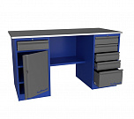 Двухтумбовый. Допустимая нагрузка на столешницу 1000 кг. Опорные элементы выполнены сварными из холоднокатаной стали. Для выполнения сборочных, ремонтных, слесарных, монтажных и других видов работ на производстве, в сервисных центрах, мастерских, гаражах, а также для обучения технологии в учебных заведениях. Комплектуется полкой-стенкой, расположенной под столешницей для удобного размещения габаритного инструмента и оснастки. Размеры верстака: 855x1596x696 мм. Вес: 128 кг. Поставляется в 4 комплектациях на выбор.