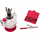 Устройство предназначено для откачки технических жидкостей посредством разряжения, и опустошения емкости повышенным давлением. Разряжение создается при воздействии на ручной привод устройства, и/или при подключение к устройству сжатого воздуха. Можно перекачивать трудновоспламенимые, водонерастворимые жидкости при соблюдении максимально допустимой температуры 1-95°C. Емкость: 10 л. Рабочее давление (пневмопривод): 2.8-12 бар.