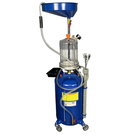 Установка для слива/откачки масла. 100л. Высота 1200-1485мм. Комплектация: щупы - 2 жёстких + 4 гибких разного диаметра, контроль уровня в баке, манометр (давление/вакуум), лоток, мерная колба для «отработки». Подключение к пневмолинии - быстросъём. Ёмкость 100л. = Бак 80л + колба 10л. + сливная воронка 10л.