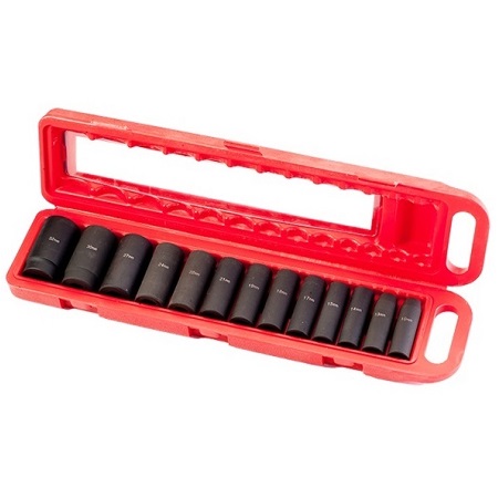 Набор удлиненных ударных головок для гайковерта 1/2” - 10-32мм. 13шт. Cr-Mo. Для слесарных, шиномонтажных постов в автосервисе и т.п. Черные. Покрытие – воронение.