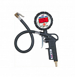 Цифровой. Рабочее давление 10 Атм. Для проверки давления в автомобильных шинах. Примененяется в автомастерских, в шиномонтажных центрах. Для удобства работы пистолет оснащен цифровым жидкокристаллическим дисплеем, на который выводятся произведенные замеры. Модель может работать от солнечной батареи, которая поставляется в комплекте, либо от 3V литиевых батарей.