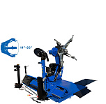 Двухскоростной автомат. Моторы 4 + 4 кВт. В комплекте: Немецкий насос «Bucher hydraulics». Гарантия до 18 мес. Диски ALU, сталь, с кольцом и без 14-56”. Размер покрышки  Ø2500 мм, делает колеса "спарку" с шириной диска до 1200 мм. Вес колеса до масса до 2000кг. Отжим min-max. 3300-11302Н/м. Оборудование для грузового шиномонтажа тракторов, комбайнов, траков. Доставляем грузовой шиномонтажный станок по России и странам ТС.