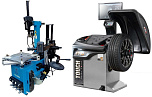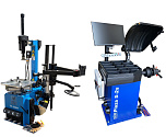 Комплект из автоматического шиномонтажного станка TS-3226А. Для дисков: 11÷24”. В комплекте: полноценная 3-й рука для работы с жесткой и низкопрофильной резиной RUNFLAT. + встроенный бустер  24 литра (взрывная подкачка) + пистолет для подкачки шин + монтажка + регулятор давления с влагоотделителем и манометром. + Proxy-8-3 автоматический балансировочный станок для колес с диаметром диска 9-28 дюймов, при ручном вводе до 30 дюймов и шириной до 20 дюймов. В комплекте: монитор SVGA + кожух с автозапуском + клещи + кронциркуль + пневмоприжим + набор конусов + лазерная навигация + электромагнитный тормоз + ультразвуковой датчик ширины.