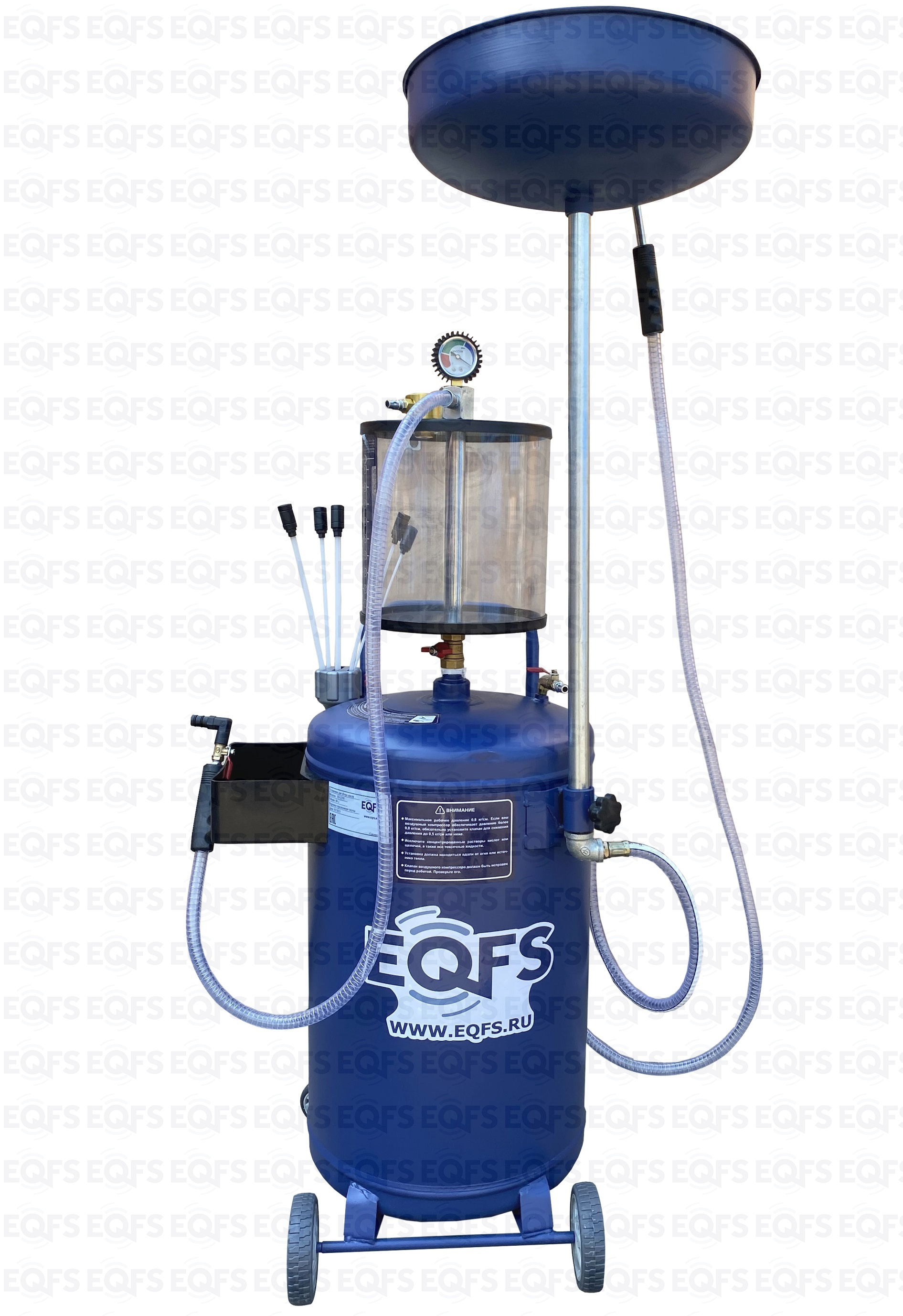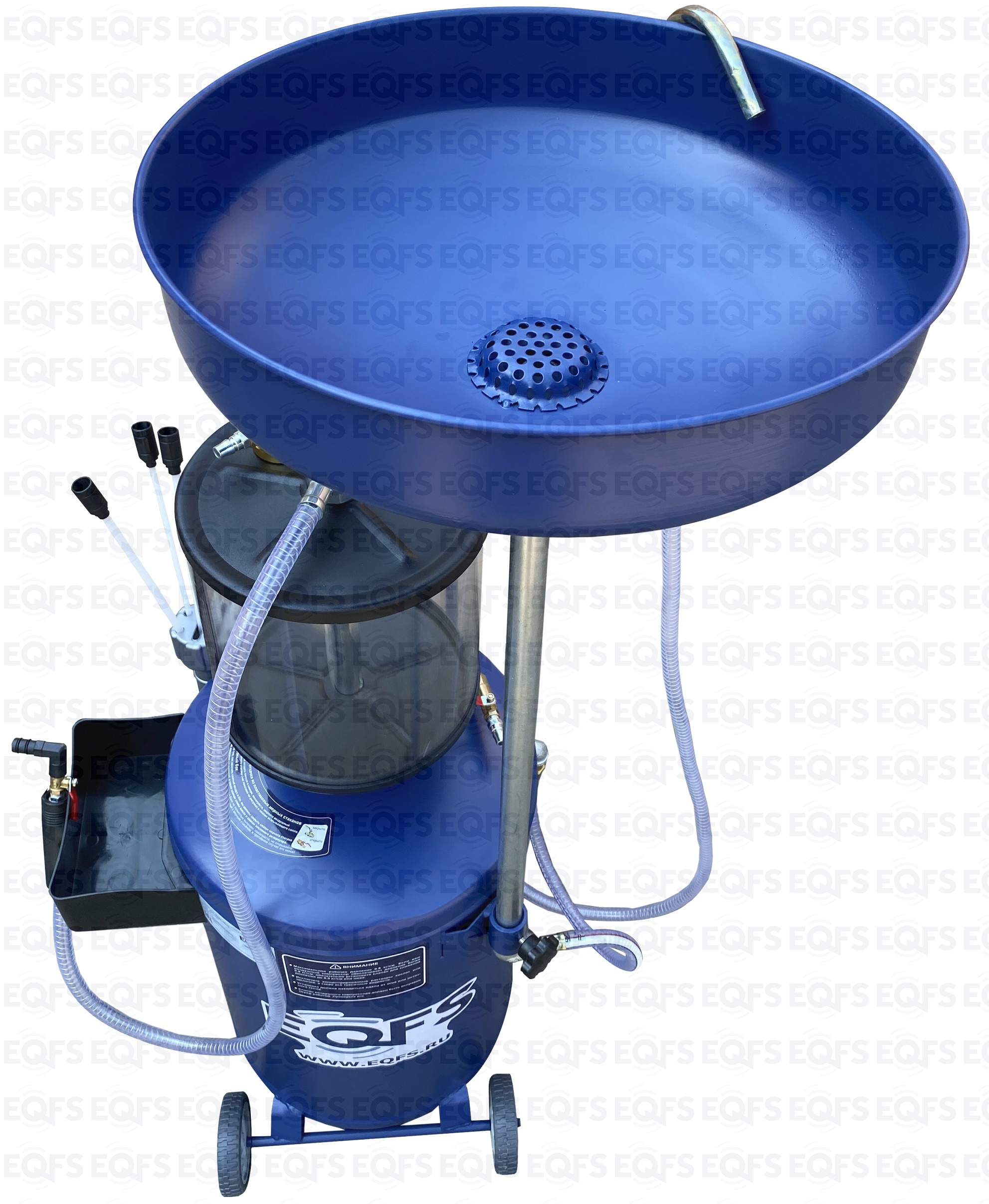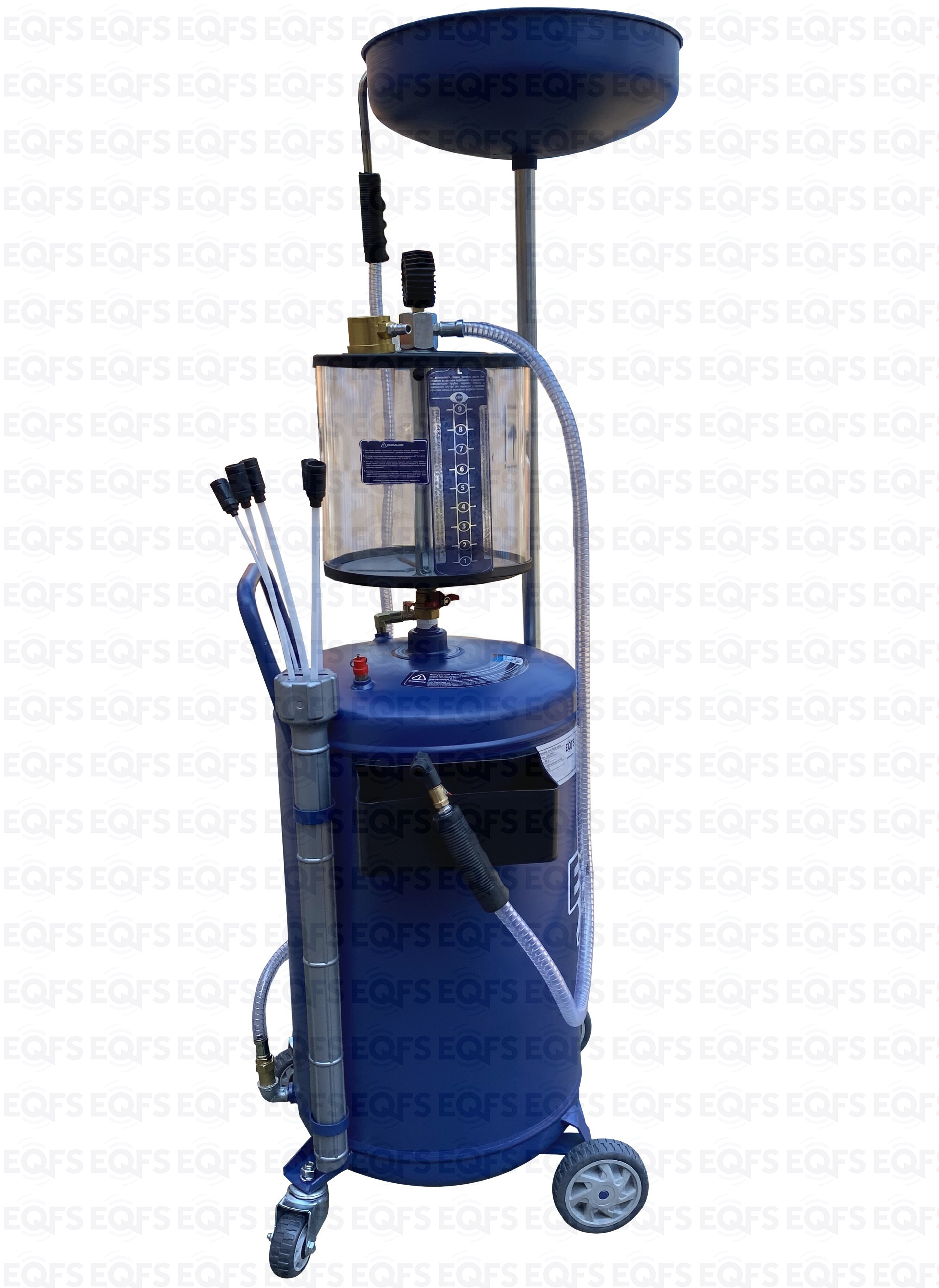 Установка для слива и откачки щупами масла и антифриза из ДВС, КПП и мостов всех авто. В комплекте: Колба + сливная чаша с сеткой для улавливания мелких деталей + щупы гибкие 5 шт. + лоток для сливной пробки + стрелочная индикация уровня разрежения + визуальный контроль уровня отработки + пистолеты для откачки масла + быстросъёмный штуцер для пневмолинии + сепаратор для выхода воздуха. Вмещает 100 л. = Бак 80л + колба 10 л. + сливная воронка 10л.