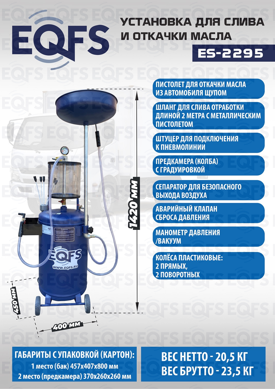 Технические особенности установки для слива и откачки масла щупами ES-2295: