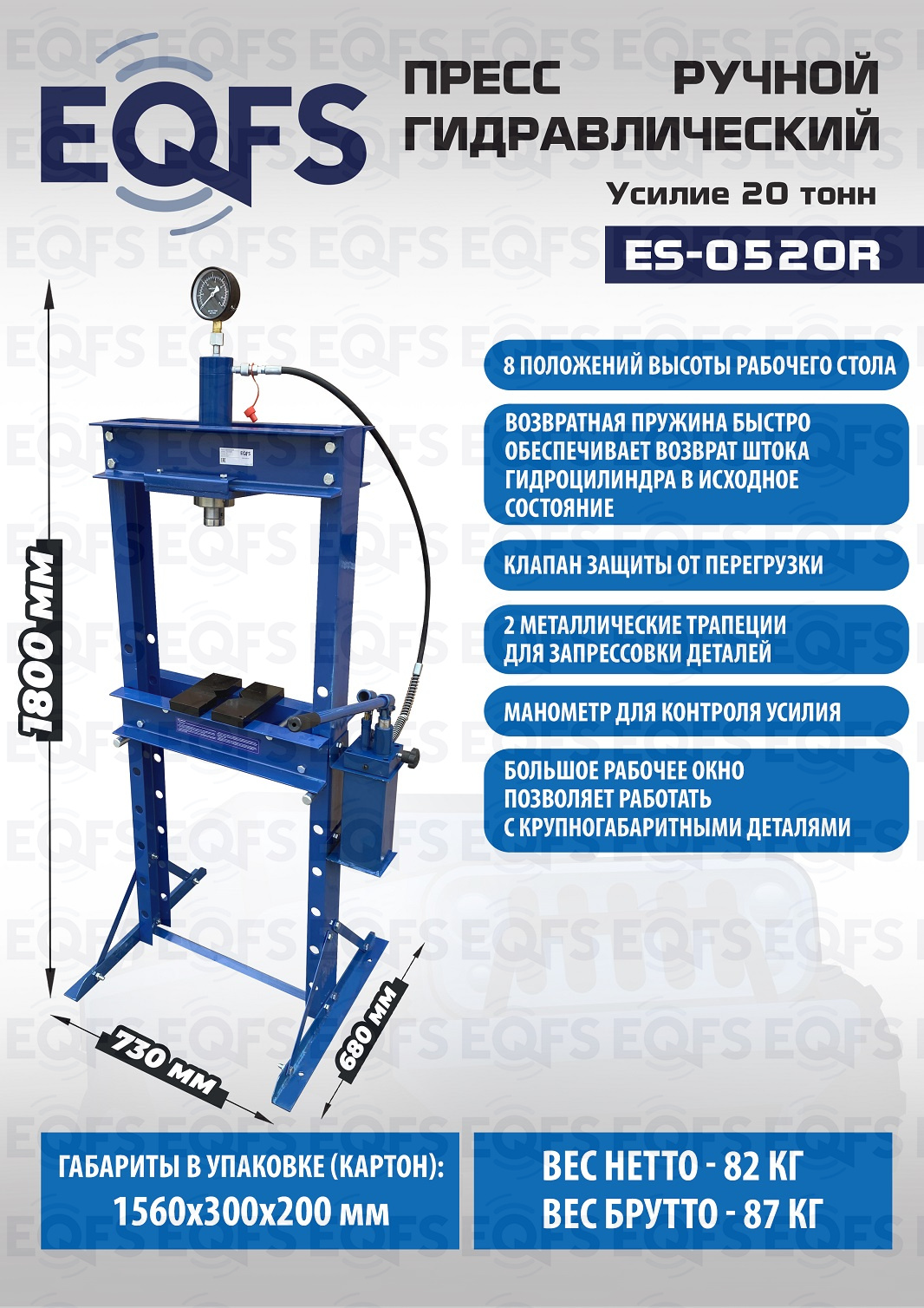 · Пресс укомплектован гидравлическим ручным насосом с максимальным усилием 20т.