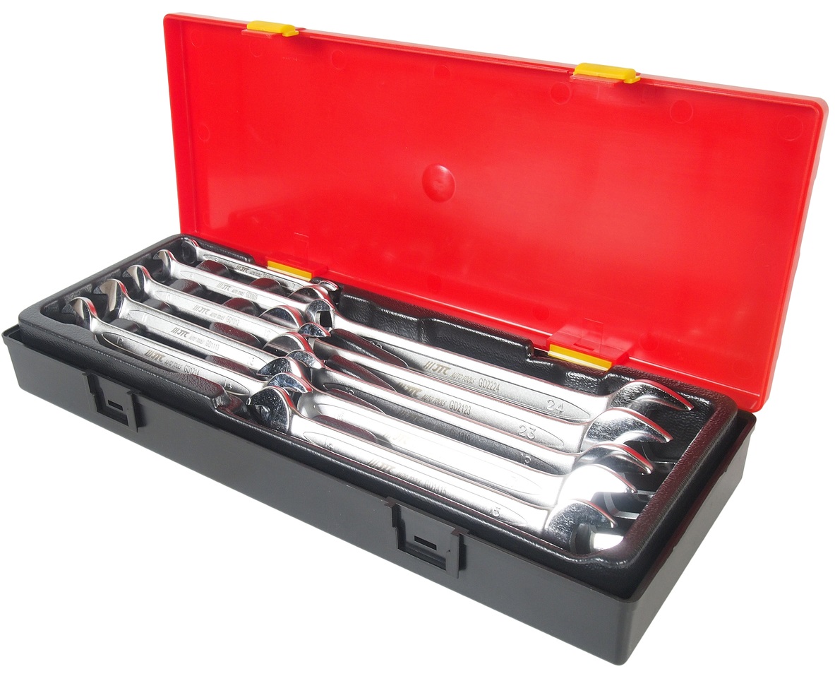 Базовый комплект инструмента состоит из тележки инструментальной с 4 ящиками, комбинированные и рожковые ключи, набор шестигранников TOPX и бит, наборы головок и отверток, клещи, щипцы и трещотку - этот набор понадобится при работе в гараже или небольшом автосервисе.