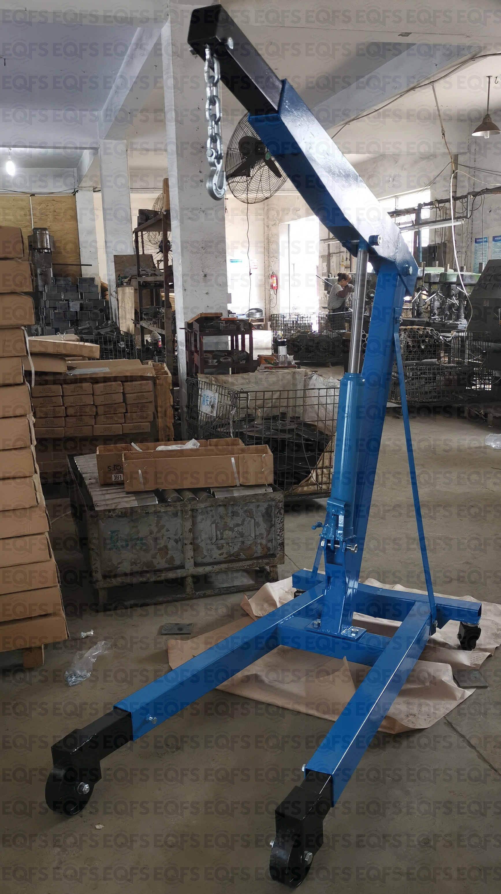 Кран гаражный гидравлический не складной грузоподъемность 3т. Вес: 120 кг. Рабочий диапазон стрелы 1200-1830 мм. Высота подъёма крана от пола цеха – 0÷1750 мм. предназначен для подъема и транспортировки автомобильных узлов, агрегатов и любых других грузов как внутри помещения так и на улице. Вынос стрелы регулируется в соответствии с максимальной грузоподъемностью крана – 500-3000кг. Рабочим приводом крана является гидроцилиндр. Устройство полностью автономно, не требует дополнительных конструкций. Цвет темно-синий.