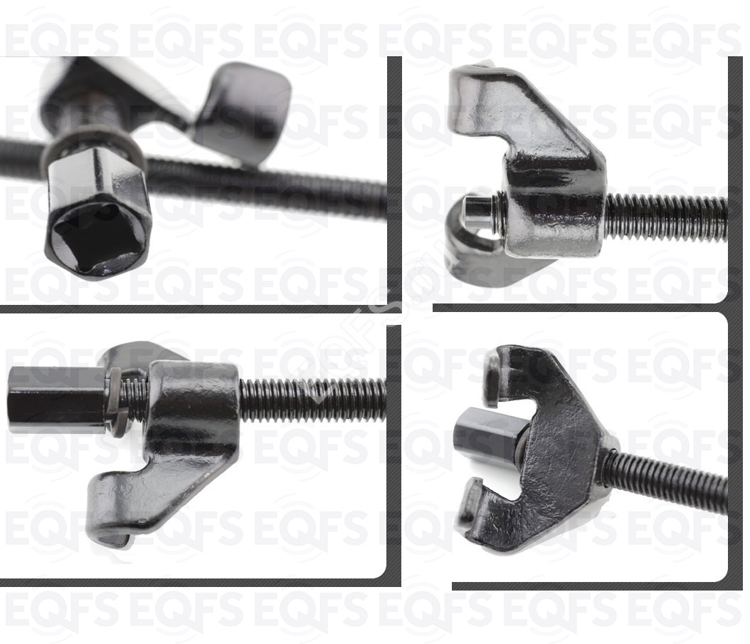 Винты с усиленной резьбой имеют шестигранный привод под ключ и квадрат под вороток 1/2’’. Подходит для использования в труднодоступных местах колесной ниши. Специальные раздвоенные концы предназначены для аккуратного захвата витков пружины. Максимальная длина захвата 380 мм.