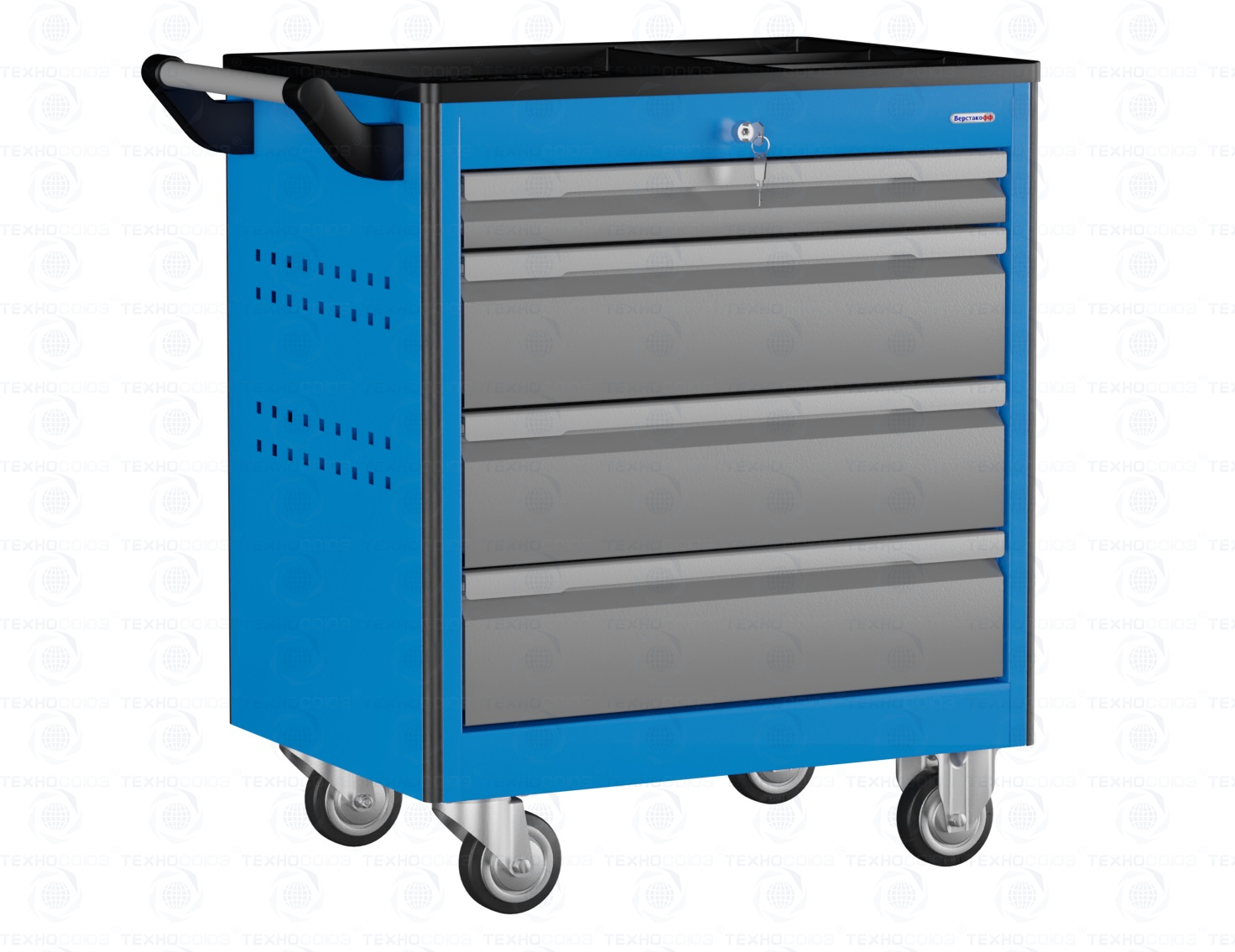 4 ящика. Нагрузка на тележку 220кг. Корпус тележки сварной. Тележка оснащена системой антиопрокидывания новой конструкции, которая блокирует открывание ящиков. На боковых стенках корпуса выполнена квадратная перфорация для установки крючков, держателей и других аксессуаров. Ящики на шариковых телескопических направляющих полного выдвижения. Обеспечен свободный и плавный ход ящиков даже при полной загрузке. Габаритные размеры тележки с учетом колес, лотка и ручки (ВхШхГ), не более: 800x780x490 мм. Вес: 42,2 кг.