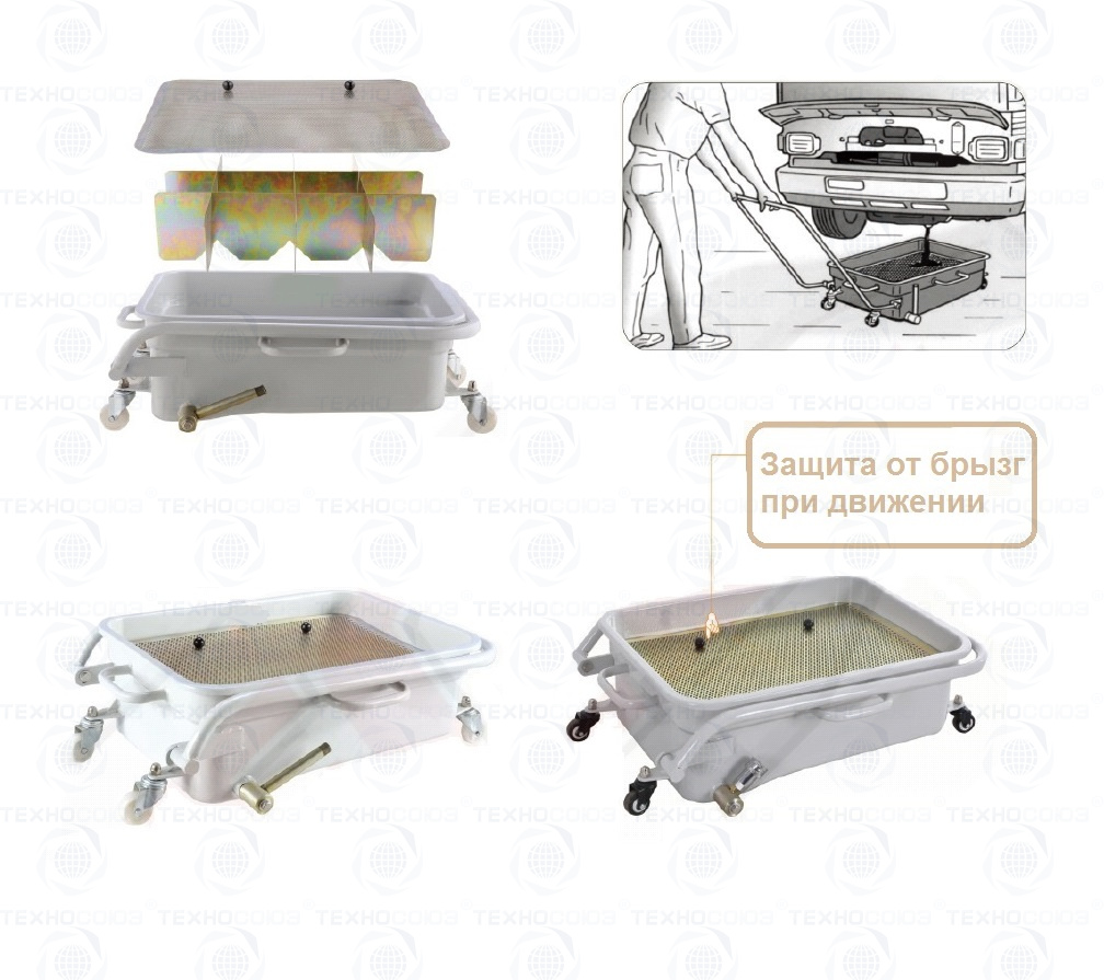 Ванна оборудована грязезащитным экраном, который можно использовать в качестве опоры для слива масляных фильтров.